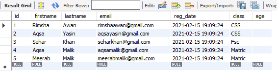 On checking the table, you will see that the table has created a new empty column ‘age’ at the last place, as shown in the image.