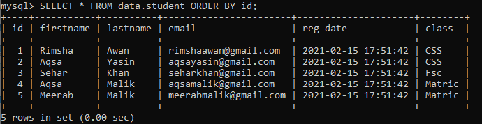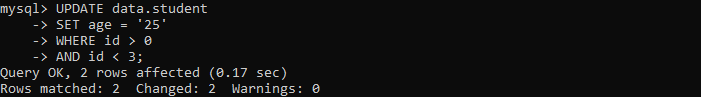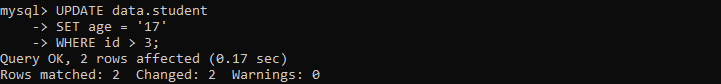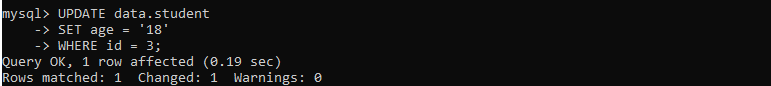 Let’s check the updated table ‘student’ using the beneath SELECT query in the command line shell as: