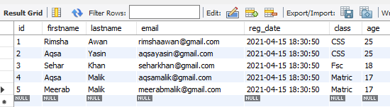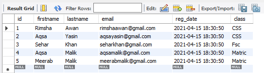 After adding values, it will look like as underneath. You can also add the Alter query in the space above this table and under the navigation bar to add a column in a table.