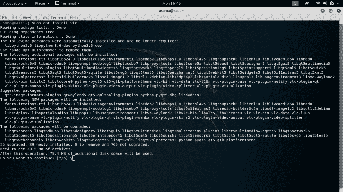 You can also install other softwares like VLC Media Player, TOR Browser by adding their repositories, using apt-get or by manually downloading their “.deb” and then installing it. For example, you can install VLC using apt-get with sudo.