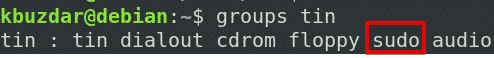 To verify if the user has been added to the sudo group, enter the following command, replacing the username with the actual username: