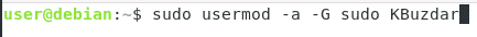 Here, replace GroupName with the name of the group to which you want to add the user and UserName with the name of the user whom you want to add in the group. In this example, I wanted to add the user KBuzdar to the sudo group. Therefore, I have replaced GroupName with sudo and UserName with KBuzdar. As soon as this command executes successfully, the specified user will be added to the specified group. This command is also shown in the following image