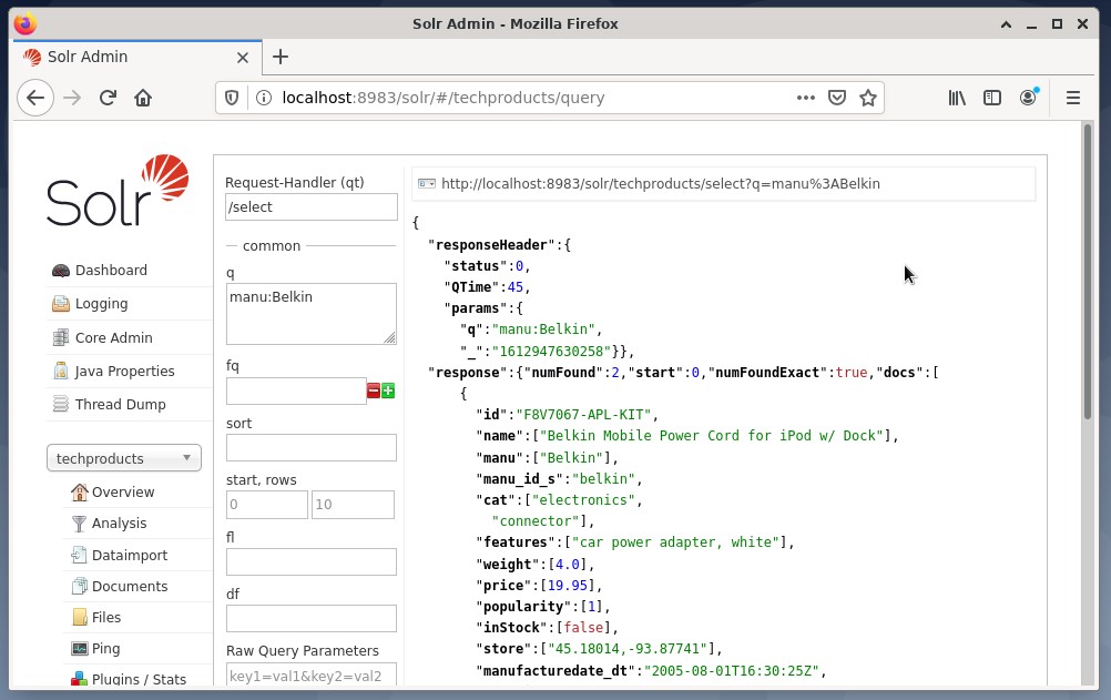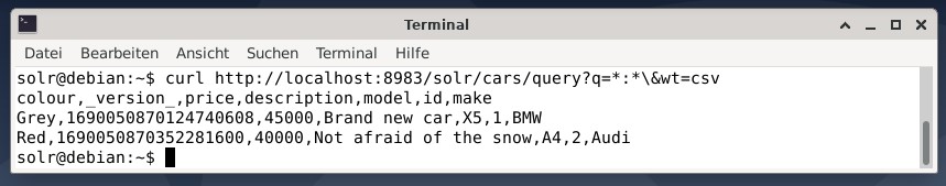 curl http://localhost:8983/solr/cars/query?q=*:*