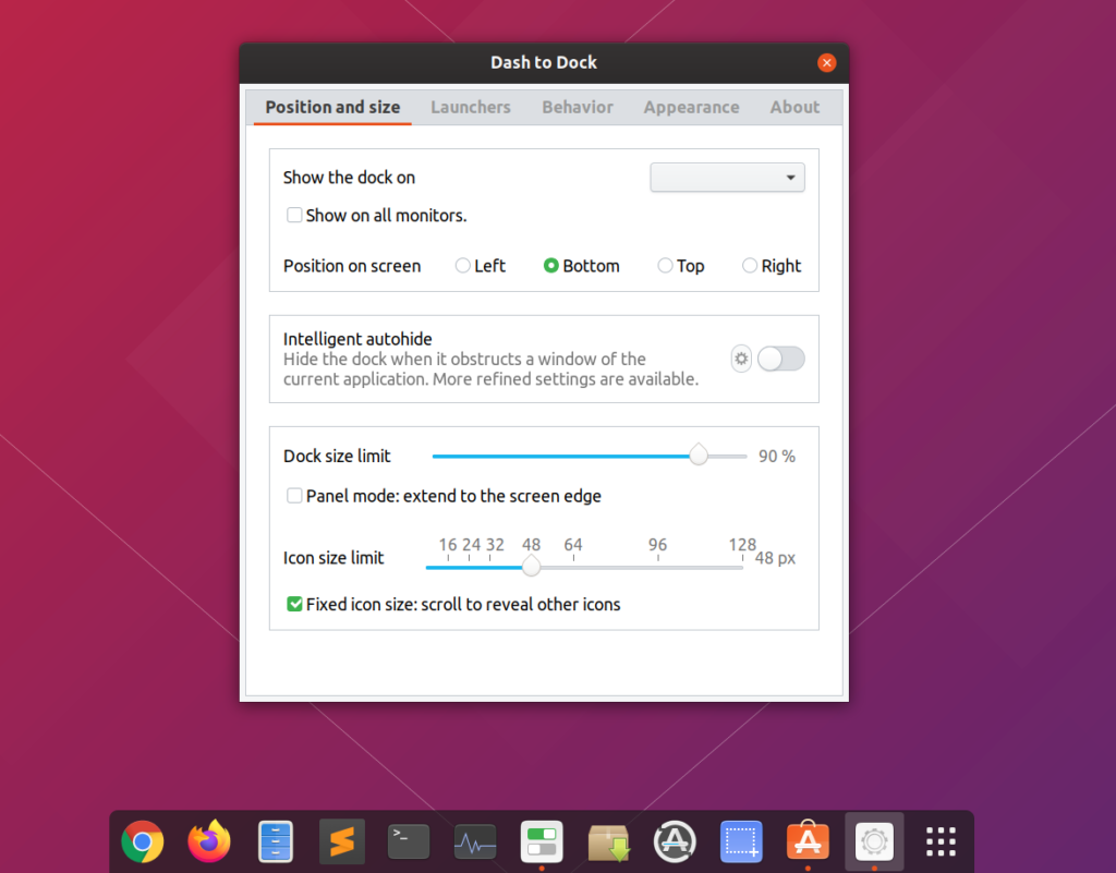 Beware that any settings that you change in Dash to Dock may affect default Ubuntu Dock as well and these settings may persist even after you uninstall or disable Dash to Dock extension. Many people prefer this way as this allows them to customize Ubuntu dock using a nice GUI frontend.