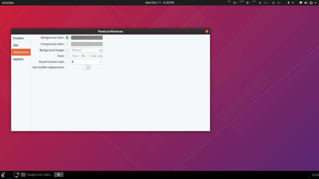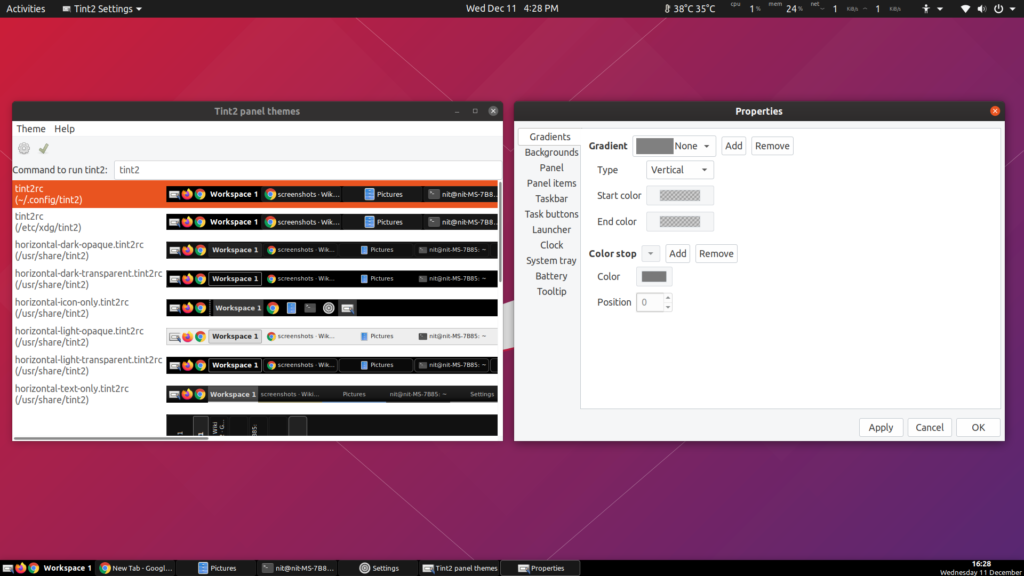 Tint2 is a standalone panel and taskbar for Linux distributions. It is light on resources while being extremely customizable. Although the default panel layout looks basic in appearance, its customization options are endless and it is possible to create extremely good looking panels with beautiful themes. Tint2 is desktop environment agnostic and you can use it in any Linux distribution of your choice.