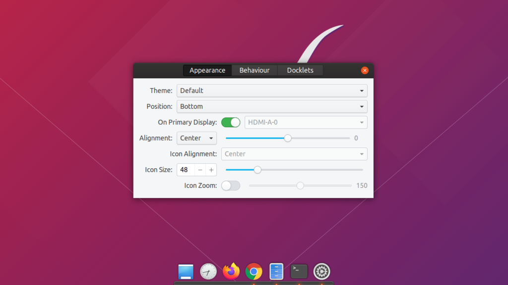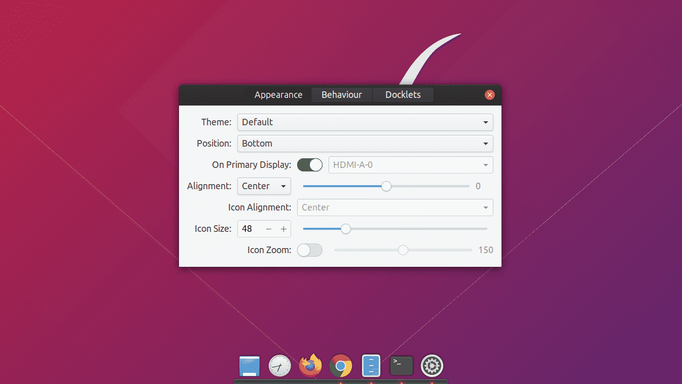 Dash to Dock is one of the most popular docks available for the GNOME Shell desktop environment. It transforms the default GNOME Shell dock in to a full fledged application taskbar that reduces mouse travel, improves multitasking and supports faster application launching. Due to its popularity and feature packed functionality, Ubuntu ships a modified version of this dock by default.