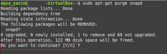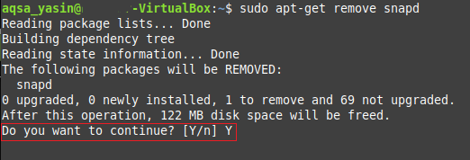 Here, you can replace snapd with the name of any other package that you want to uninstall while making use of the ‘apt-get remove’ command.