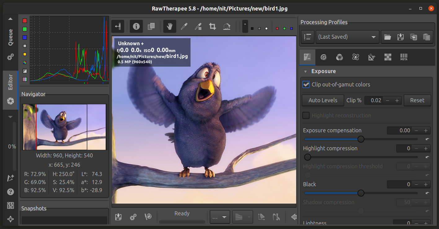 RawTherapee is an open source image editing software specially designed for processing and handling “raw” images. You can also import and edit image files having other formats. RawTherapee features various utilities for processing raw images including color enhancement tools, compositing and masking utilities, pixel correction tools and HDR utilities.