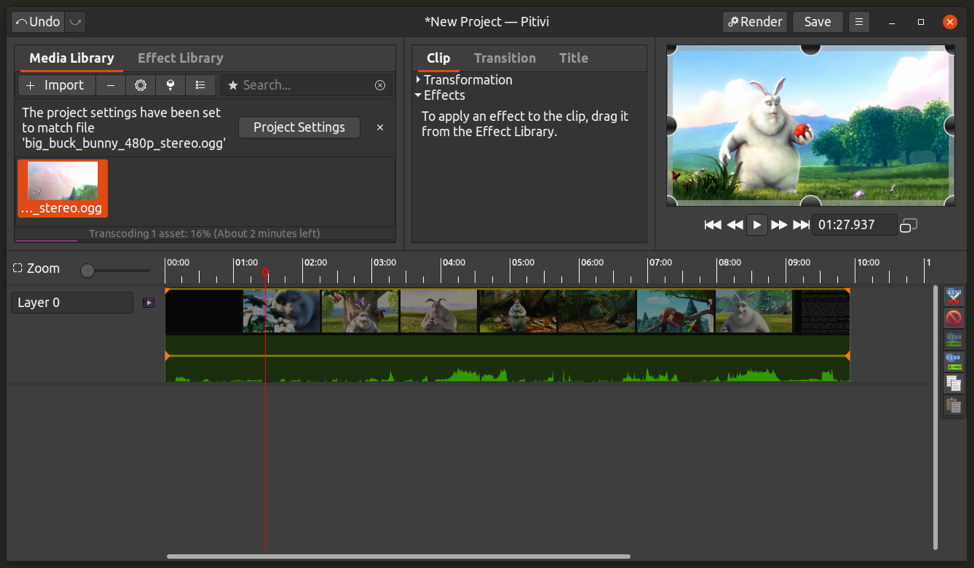 Pitivi is an open source video editor featuring an intuitive multi-panel layout. It comes with numerous animations, filters and effects that can be used between clips or overlayed on them. Other features of Pitivi video editor include clip resizing, cropping, live previews, drag and drop interface for clips, support for snapping and grouping of clips, an asset manager, audio editing tools, multiple export profiles, modern GTK3 interface, periodic backups, and so on.