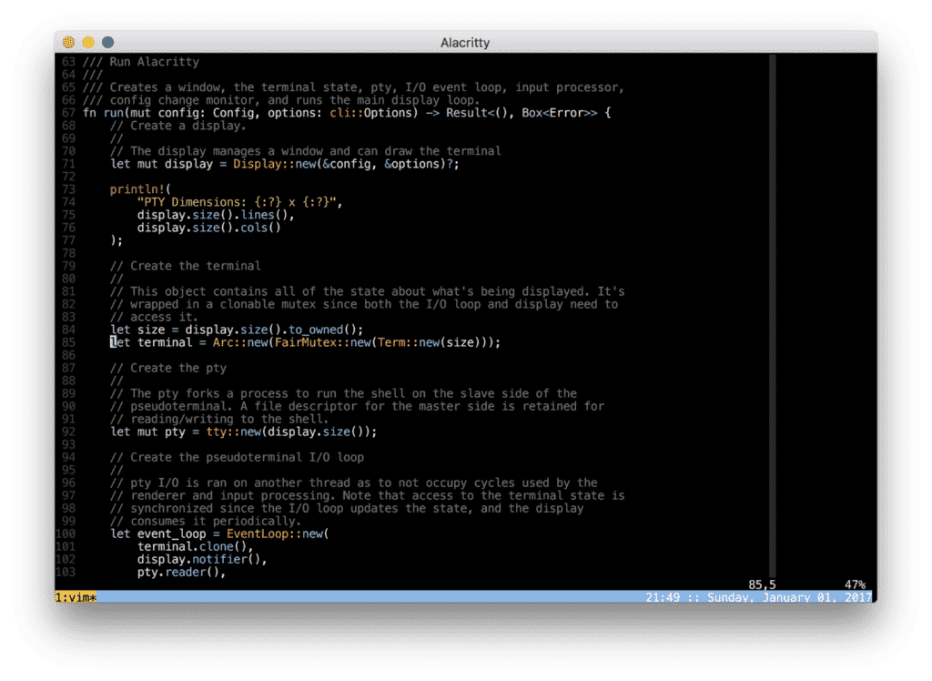 In addition to its performance, Alacritty also offers simplicity and sane defaults, which greatly reduce the need for post-installation tweaking. But if you want to, you can simply open its well-documented configuration file in your favorite text editor and tweak Alacritty to your liking.