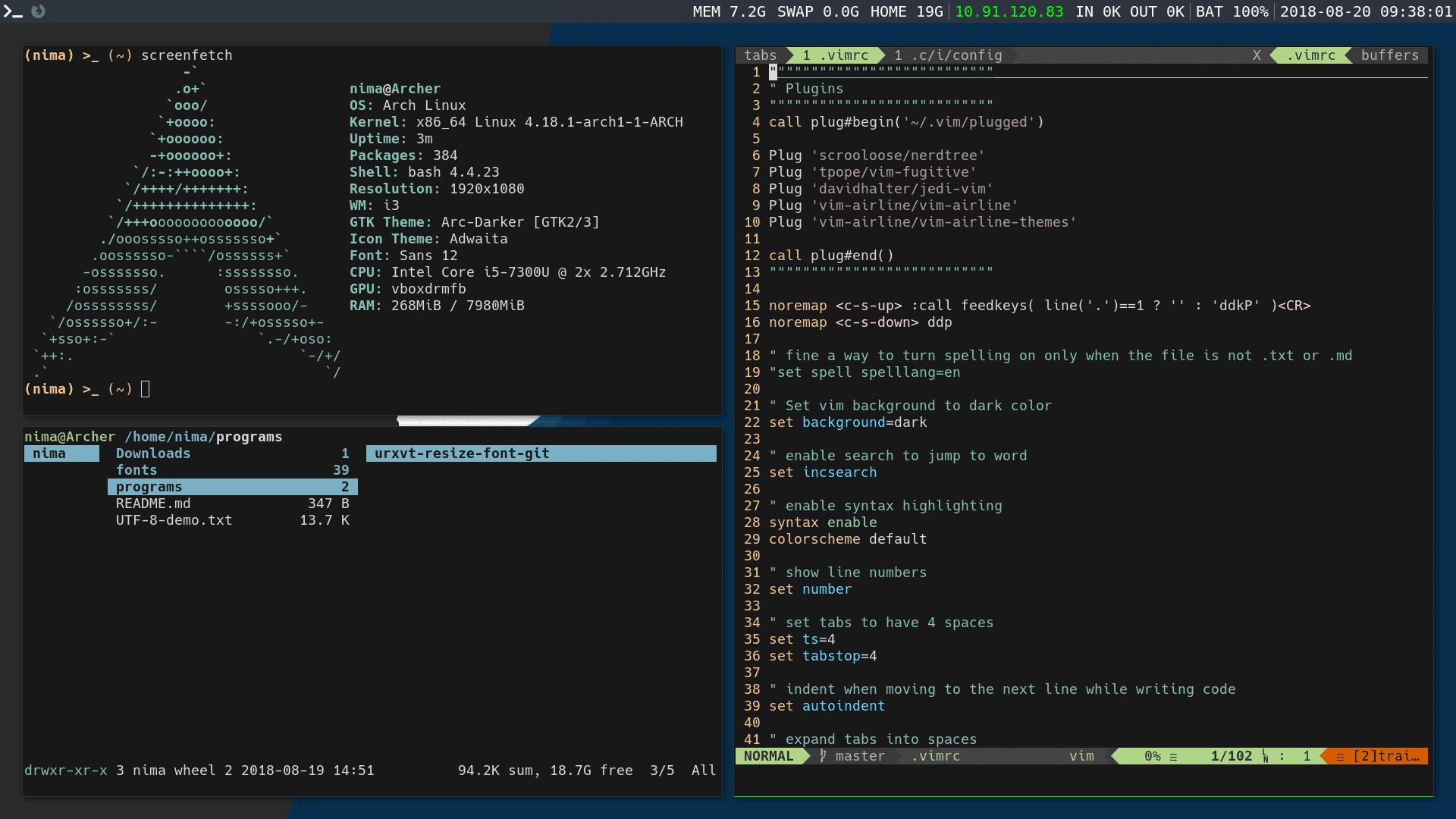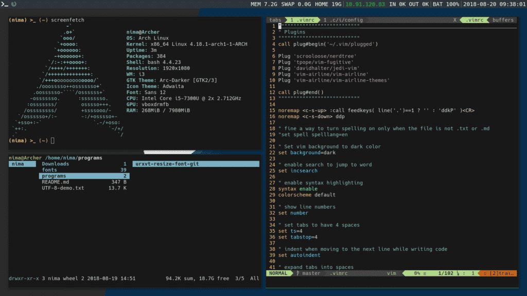 If you don’t have time to learn how to configure URxvt but still want to make it pretty, we highly recommend borrowing someone else’s config file. Here’s one good example, but you can find countless more with a simple online search.