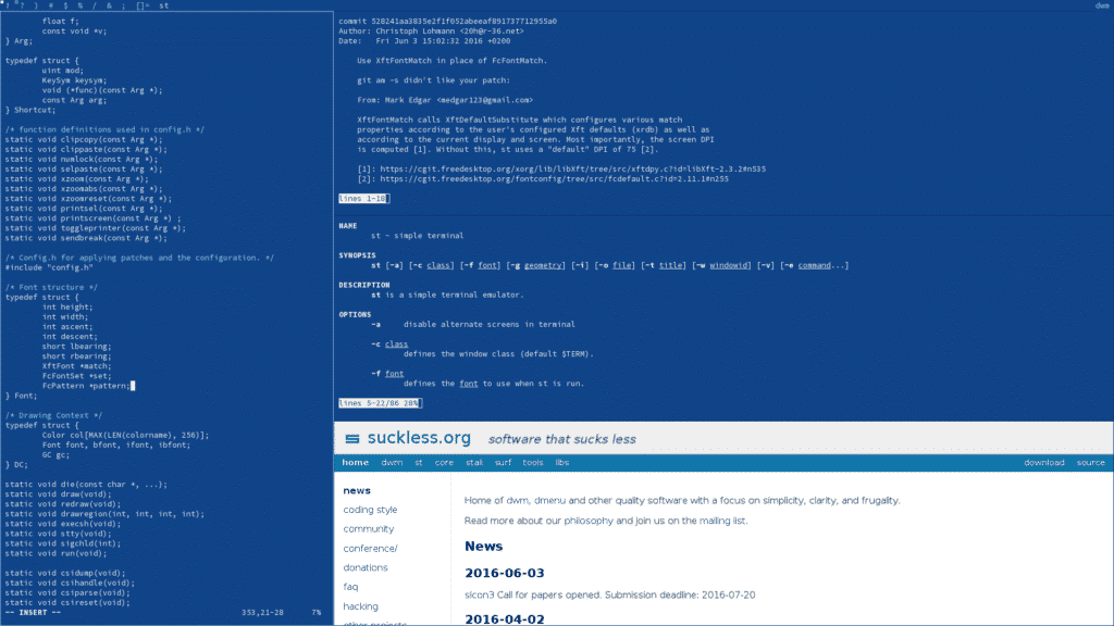 Developed by suckless, a community of developers working on minimalist free software projects that emphasize simplicity, clarity, and frugality, ST is a simple terminal implementation that doesn’t try to emulate obscure terminals most users won’t ever come in contact with (we’re looking at you, Tektronix 4014).