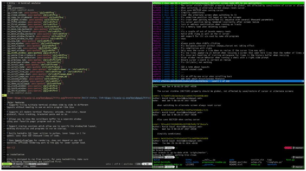 The ability to render arbitrary raster graphics comes in handy when using programs like termpdf, ranger, neofetch, and also Kitty’s own kitty-diff, a side-by-side terminal diff program with support for images.