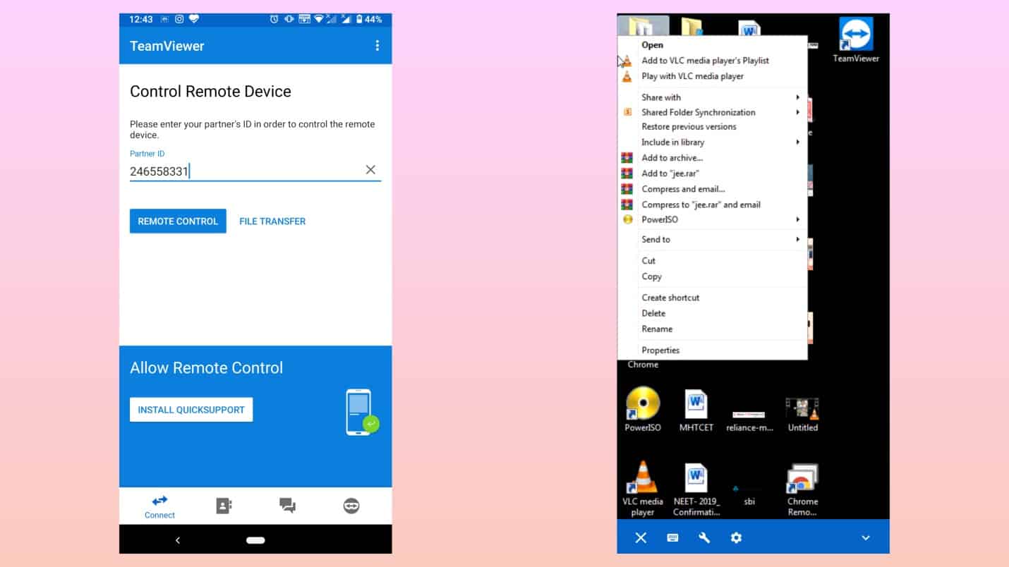 All you need to do is install AnyDesk client on both devices, then enter AnyDesk Id, which is being displayed on the remote side, confirm the session that’s it. Working experience via AnyDesk remote control has been excellent and smooth thanks to the constant frame rate of 60 FPS. The best thing about it is that it works effortlessly on slow bandwidth also. Try it!