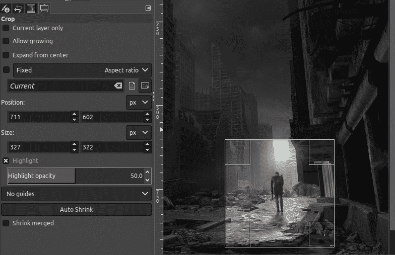 One of these is the Crop tool which allows GIMP to select and drag out a portion of the image. Using the keyboard shortcut, Shift + C, the crop tool starts and then you can select the outline that you want to crop out. Using the Shift key allows one to maintain the original aspect ratio of the image and then the Enter key can be pressed to confirm the final selection.