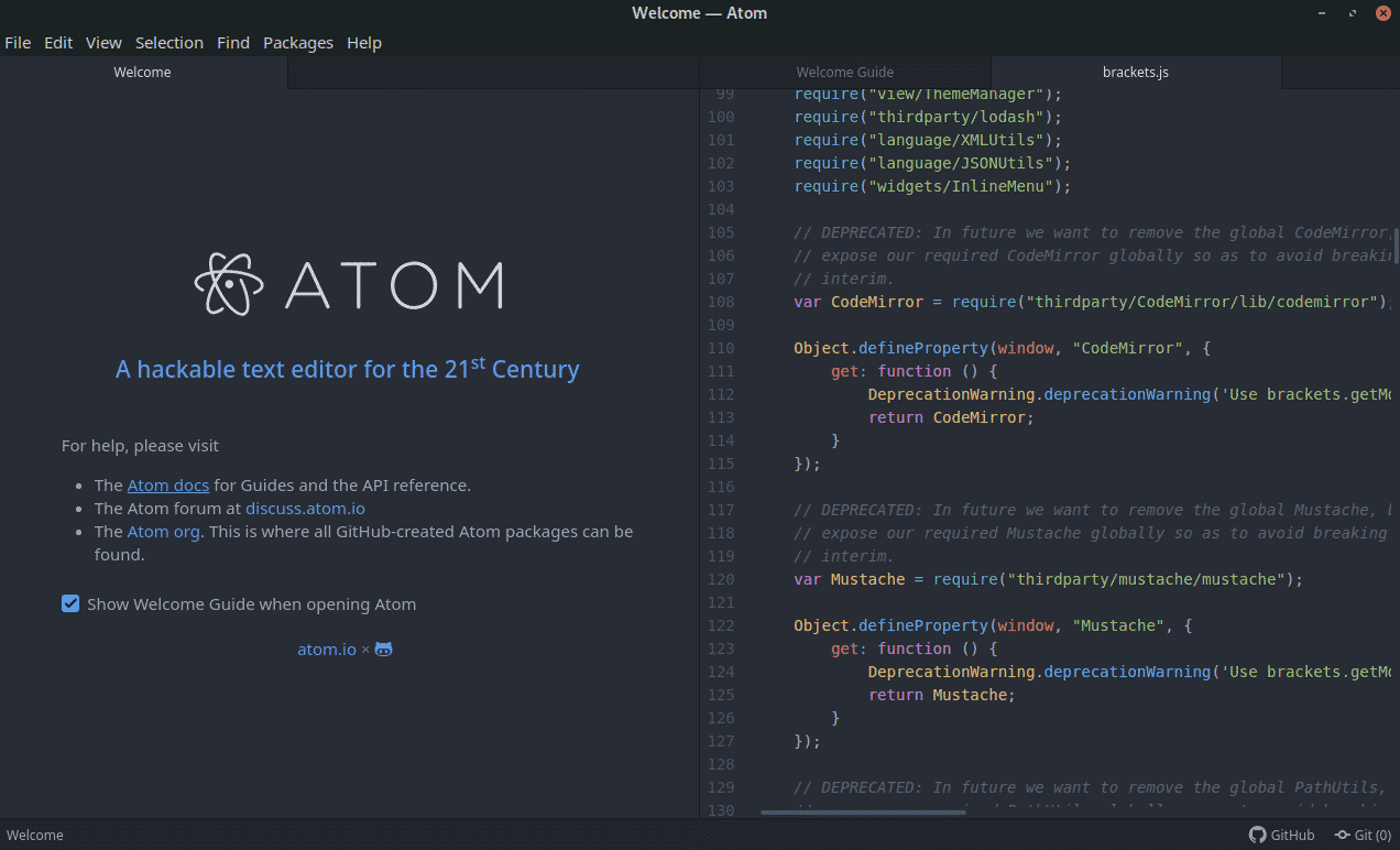 Developed by the people behind GitHub, Atom is another popular text editor built on Electron. It has become somewhat infamous for its high memory usage, but some see it as a small price to pay for portability and hackability. As long as you know HTML, CSS, and JavaScript, you can customize Atom to your image and make it do whatever you want.