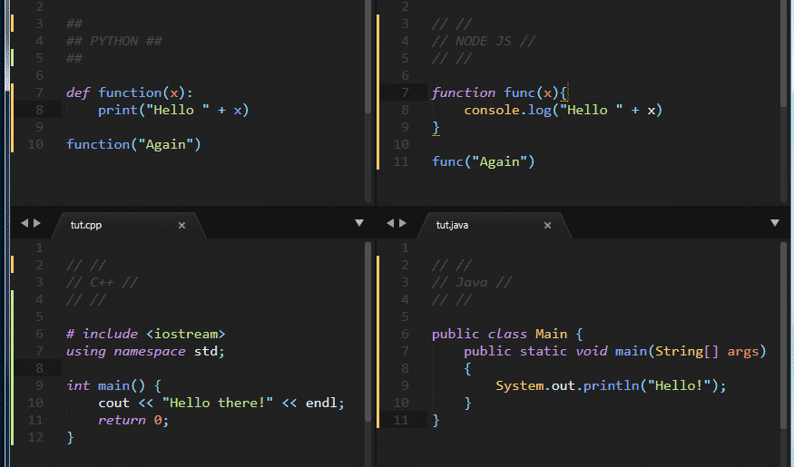 The image below shows the multi-language support and layout change offered by Sublime Text: