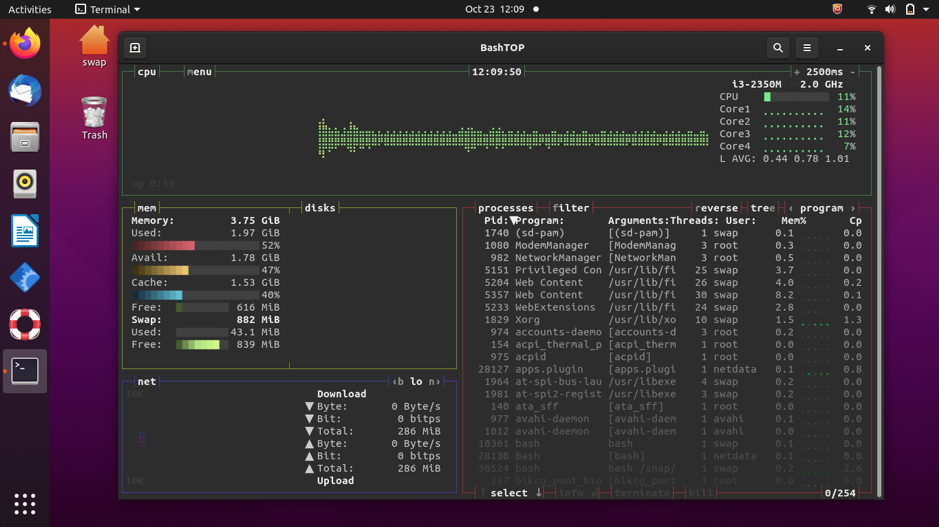 BashTOP is another cool and reliable system monitoring tool for Linux and its distros such as Ubuntu. It displays the usage stats for processor, memory, disks, network, and other resources.