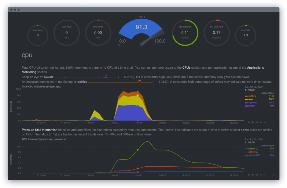 The Netdata is a cross-platform system monitoring tool that has a very attractive and modern user interface, which is eye-catching. It is a great tool for personal as well as enterprise use for managing large computer infrastructures.
