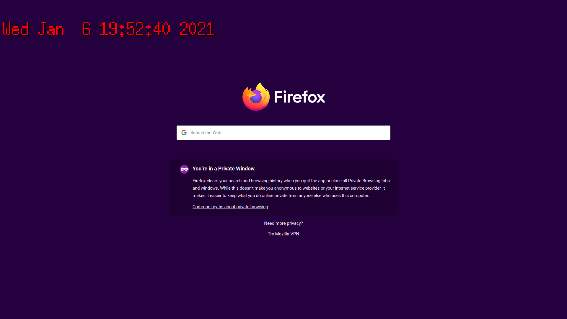 Osdclock shows current date and time as on OSD (On Screen Display) overlay. It works on all Linux distributions regardless of the desktop environment or panel used. It is especially useful when you are running a full screen app or game and want to know the current time. Below is an example showing the command and how its output looks like on a fullscreen Firefox window. You can customize its font style, size and display position using various command line options it comes with.
