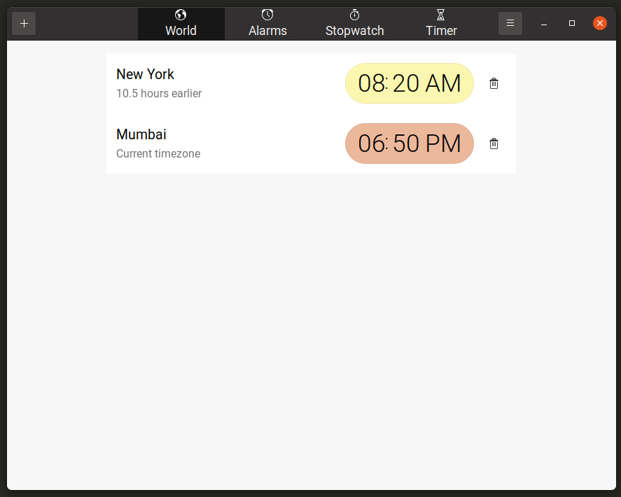 GNOME Clocks, as the name suggests, is a clock application that is included in default repositories of almost all major Linux distributions. It is part of the official GNOME-3 application stack and it supports displaying time and date for many different time zones. Other features of GNOME Clocks include support for stopwatch, countdown timers and alarm notifications. If you are looking for an all-in-one, comprehensive clock application for Linux, you won’t have to look beyond the GNOME Clocks application.