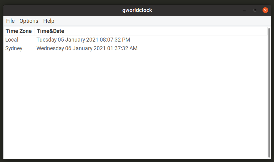 Gworldclock is a simple clock application that can show current date and time for different regions around the world. Unlike GNOME Clocks, it doesn’t have any extra functionalities. However, you can manually add new time zones, customize the format of date and time string, and add your own remarks to the string format.