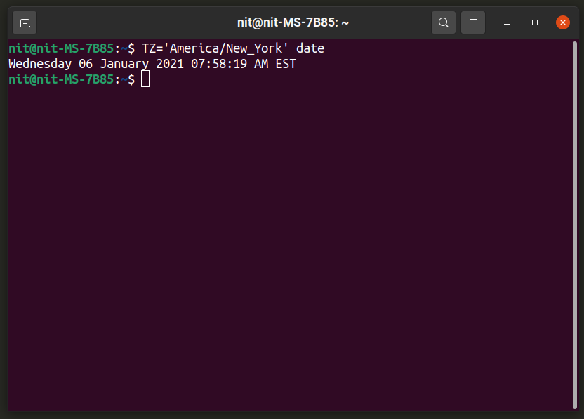 The “New_York” and “Los_Angeles” parts in the command specify the time zones for which you want to show calculated time. To view names of all possible locations, use the following command: