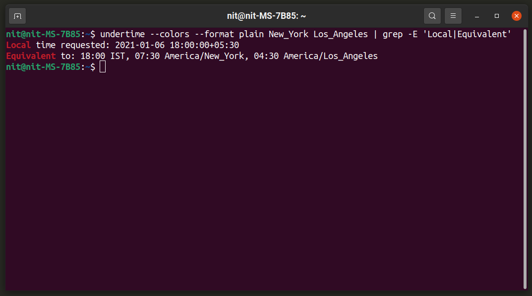 By default, Undertime takes the default locale time set on your Linux system. The command used in the above screenshot is specified below (you can customise it as per your needs):