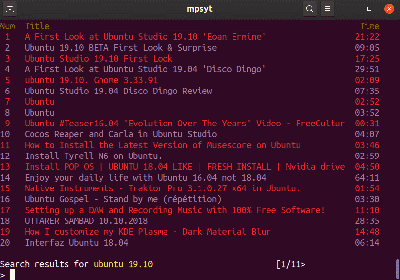 Search example: To search for “Linux”, you have to use a command like this inside mps-youtube terminal:
