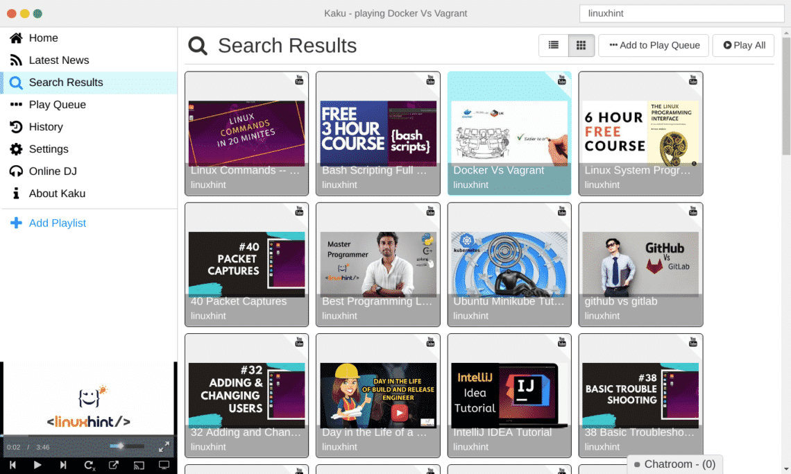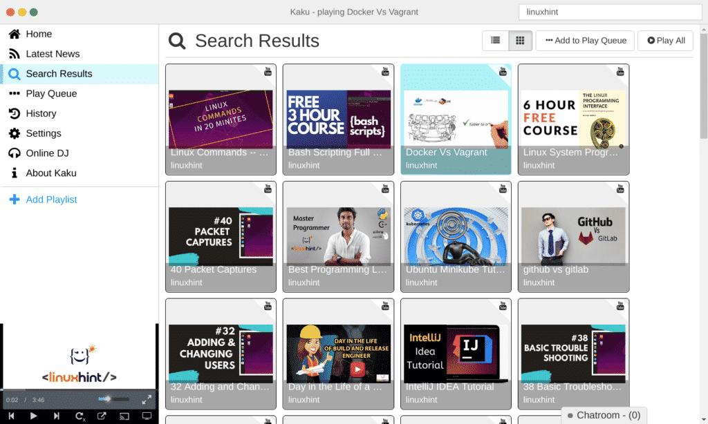 Kaku is a free and open source music and video player that supports different online platforms like YouTube, SoundCloud, Vimeo etc. Built in Electron, it is available for Windows, Linux and macOS. Some of the Kaku features include DJ mode, local watch history, play queue, ability to import YouTube playlists, desktop notifications and region selection.