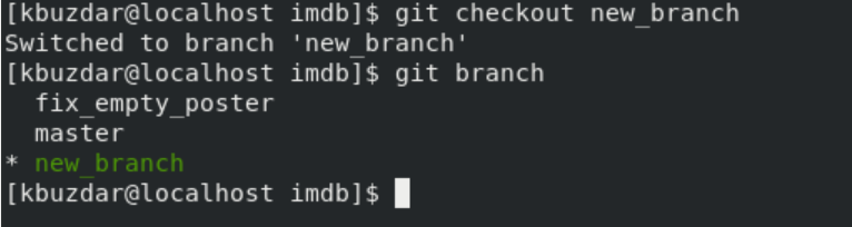We have created a new branch above by using ‘git branch new_branch’. But, the active branch is the ‘master branch’. To activate the ‘new_branch’, execute the following command on the terminal: