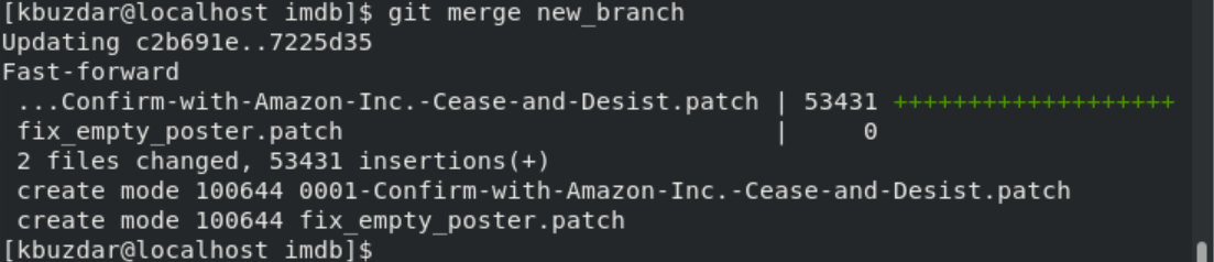Using the ‘git merge new-branch’ command, you can merge the specified branch into the currently active master branch. The new feature now has been added with the master branch. Using the following command, you can check commits and details: