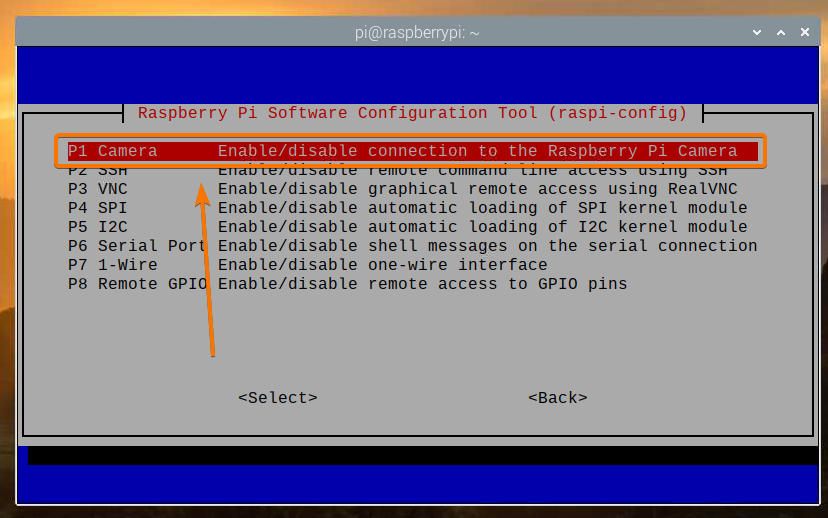 The camera interface is disabled by default on the Raspberry Pi OS. You can enable it from the Raspberry Pi configuration tool, raspi-config.