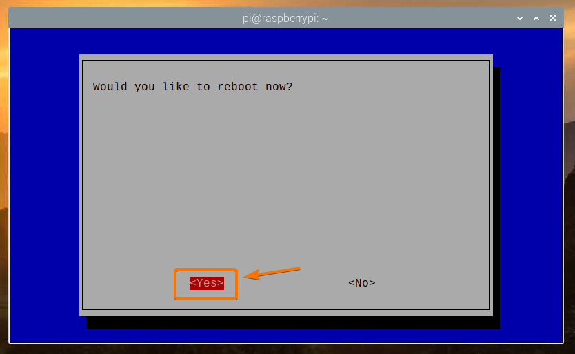 Select <Yes> and press <Enter>. Your Raspberry Pi should reboot, and the changes should be applied.