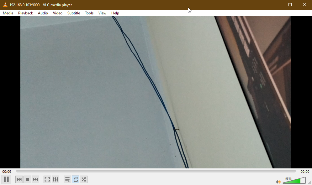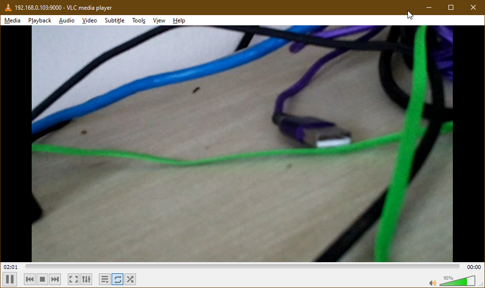 The VLC Media Player should start streaming the video feed from the Raspberry Pi, as you can see in the screenshot below.