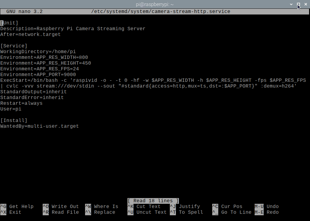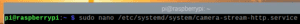 Once you’re done, press <Ctrl> + X followed by Y, and <Enter> to save the camera-stream-http.service file.