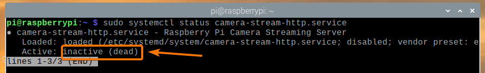 As you can see, the camera-stream-http systemd service is not running at the moment.