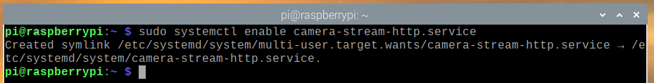 You can add the camera-stream-http systemd service to the system startup of Raspberry Pi OS with the following command: