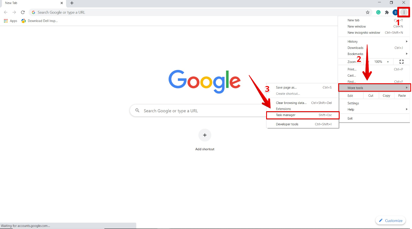 To open the Google Chrome Task Manager, click on the three dots icon in the top right-hand corner, then move your cursor to the ‘More tools’ option. A drop list with more options will appear, from which you will select ‘Task Manager.’ You can also open the Task Manager through keyboard shortcut keys. Press Shift + Esc for Windows and Search + Esc on OS Chrome.