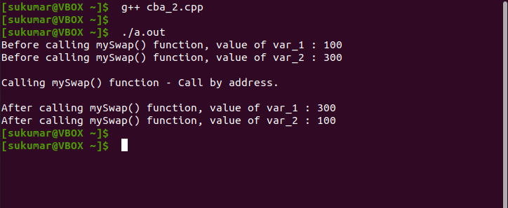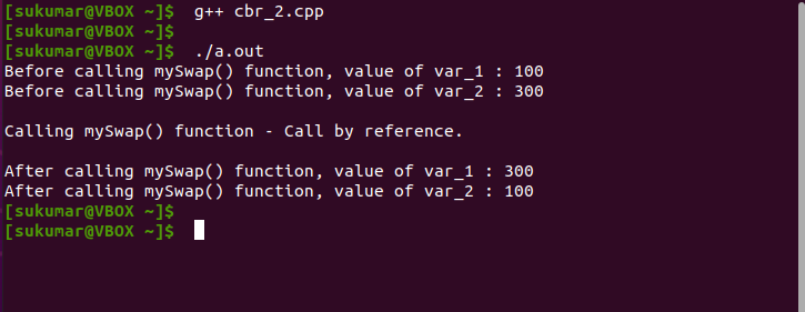 cout << "After calling mySwap() function, value of var_2 : " << var_2 << endl;