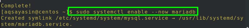 When the setup is complete, start the MariaDB service and enable it to begin the boot process instantly by typing the appended below command: