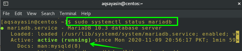 To confirm that the MariaDB service is working, check the status of the system using the following command: