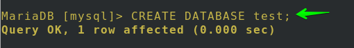 Build a new database for MariaDB, named test. At the MariaDB command prompt, run the following instruction: