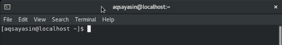 Performing this action will cause a search bar to appear on your screen, in which you can search for the terminal. You may also open the terminal by using the shortcut Ctrl+Alt+T. The CentOS 8 terminal is shown in the following image: