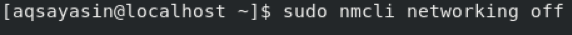 To restart the Network service in CentOS 8 using the “nmcli” utility, first, turn off the networking service by running the command below in the terminal window that you just launched: