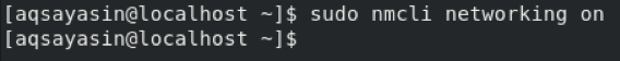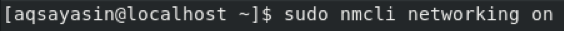 In this method, you first turned off the networking service and then turned it on. Essentially, you have just restarted the networking service using the “nmcli” utility in CentOS 8.