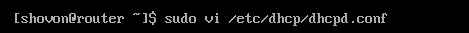 Now, open the DHCP server configuration file /etc/dhcp/dhcpd.conf with the following command: