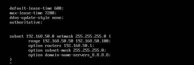 subnet 192.168.50.0 netmask 255.255.255.0 {