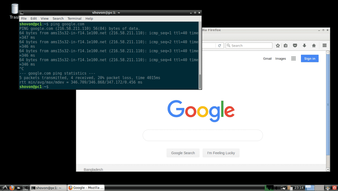 I can ping google.com and access google.com from the web browser from pc1 as well. So, internet is working.