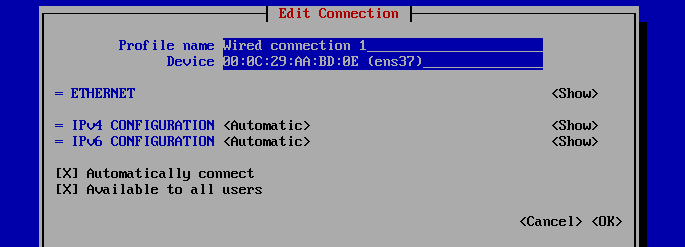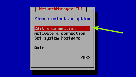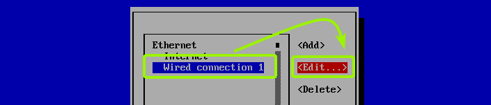 So, select Wired connection 1 and press <Tab>. Then, select <Edit…> and press <Enter>.